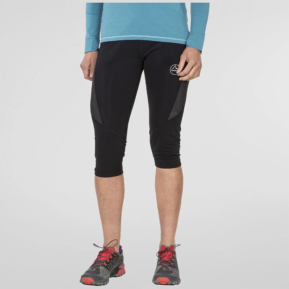Il main fabric in poliammide riciclata con elastan offre resistenza e elasticità, mentre gli inserti in poliestere riciclato migliorano la traspirabilità nelle zone strategiche. I pannelli in mesh favoriscono la ventilazione per restare asciutti anche sotto sforzo.
