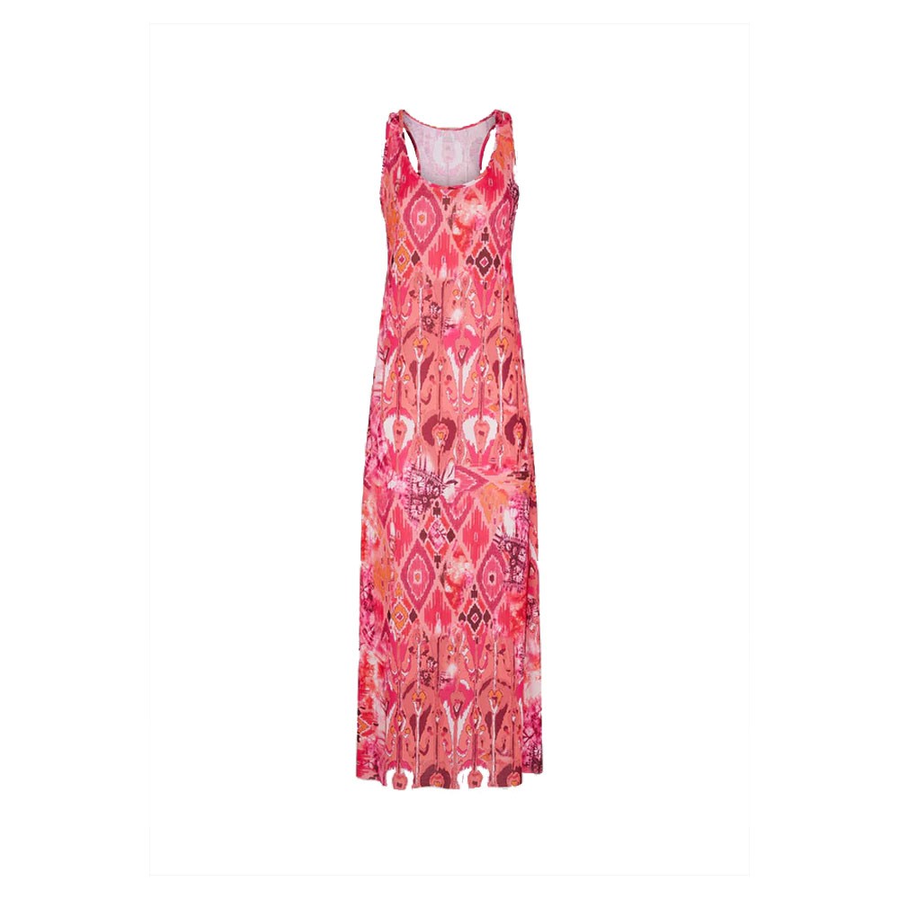 Abito Da Spiaggia Canottiera Effek lungo, in tessuto jersey a fantasia con spacco laterale.