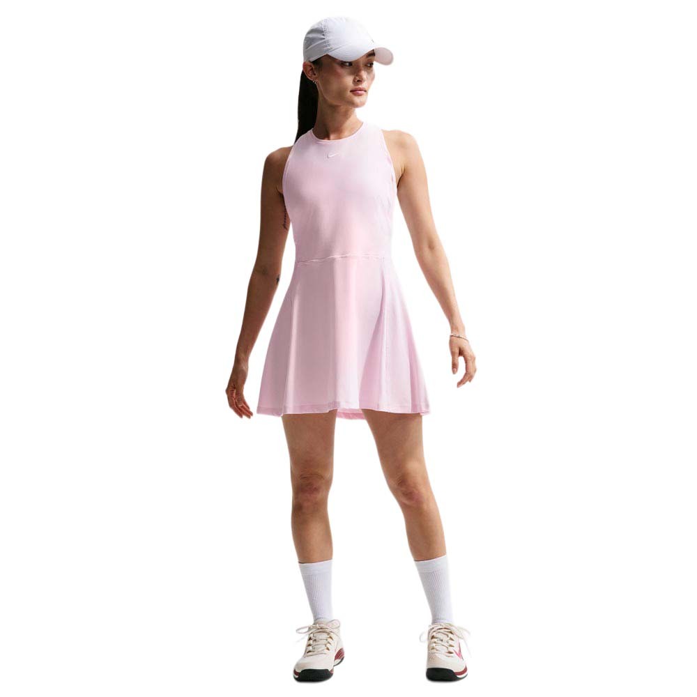 L’abito Nike Victory porta l’eleganza funzionale in campo. Il tessuto ultra morbido, ultraelasticizzato e ad asciugatura rapida segue ogni movimento, mentre la tecnologia Dri FIT allontana il sudore per un comfort costante. Lo scollo alto offre copertura in ogni posizione e gli inserti a costine nel giromanica, elasticizzati, garantiscono una libertà di movimento naturale su servizio, dritto e rovescio.