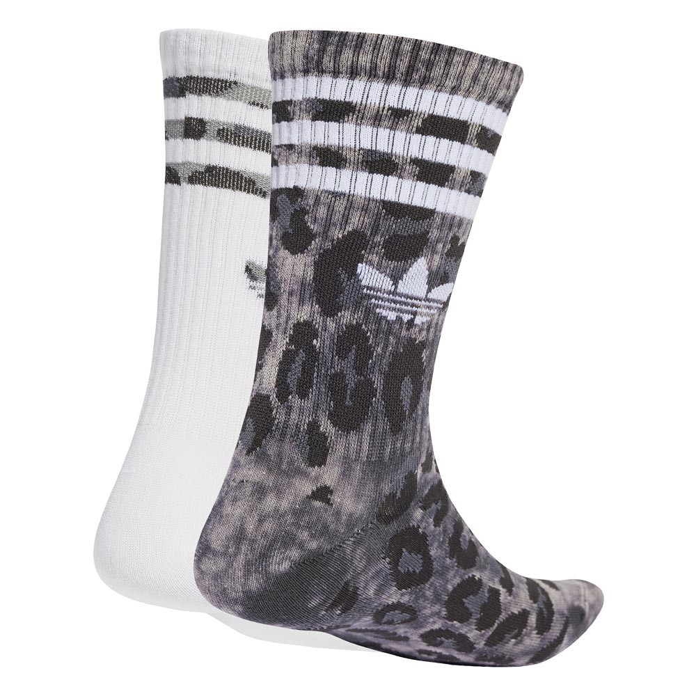 Caratterizzate da un'intensa stampa leopardata, queste calze Adidas in nero sono una vera e propria dichiarazione di stile. La confezione include due paia: un paio presenta una stampa allover per un impatto massimo, mentre l'altro è arricchito da un motivo con il logo Adidas, per un tocco più discreto ma altrettanto distintivo. L'effetto vissuto dona un tocco old-school al look, combinando il fascino retrò con le tendenze attuali. Le iconiche 3 strisce e il Trifogliocompletano il tutto, rendendo queste calze morbide, confortevoli e un accessorio indispensabile per esprimere la tua personalità.