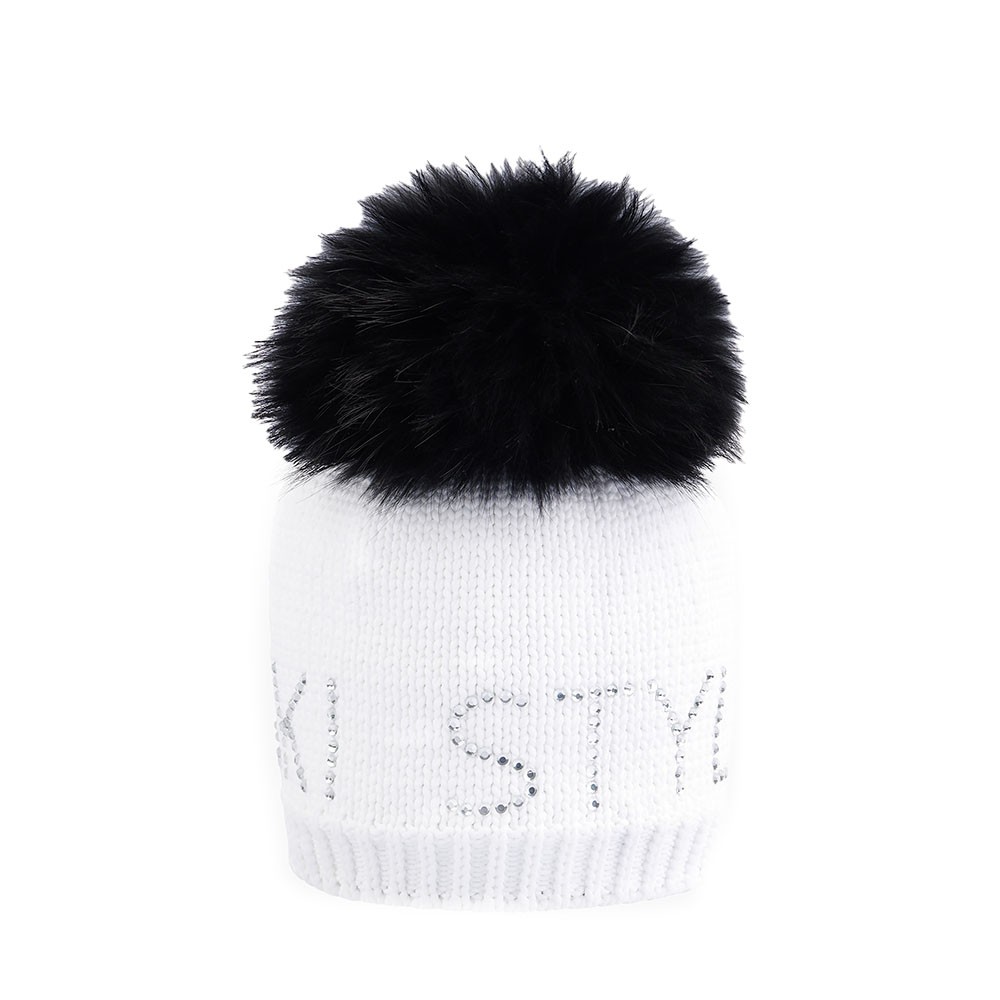 Il dettaglio distintivo è la scritta scintillante in strass, che illumina il design con un accento glamour. Il pon-pon in vera pelliccia, removibile, aggiunge un elemento raffinato e versatile, adattandosi facilmente al tuo stile.
