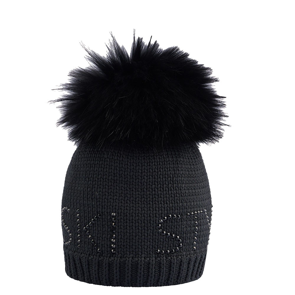 Il dettaglio distintivo è la scritta scintillante in strass, che illumina il design con un accento glamour. Il pon-pon in vera pelliccia, removibile, aggiunge un elemento raffinato e versatile, adattandosi facilmente al tuo stile.