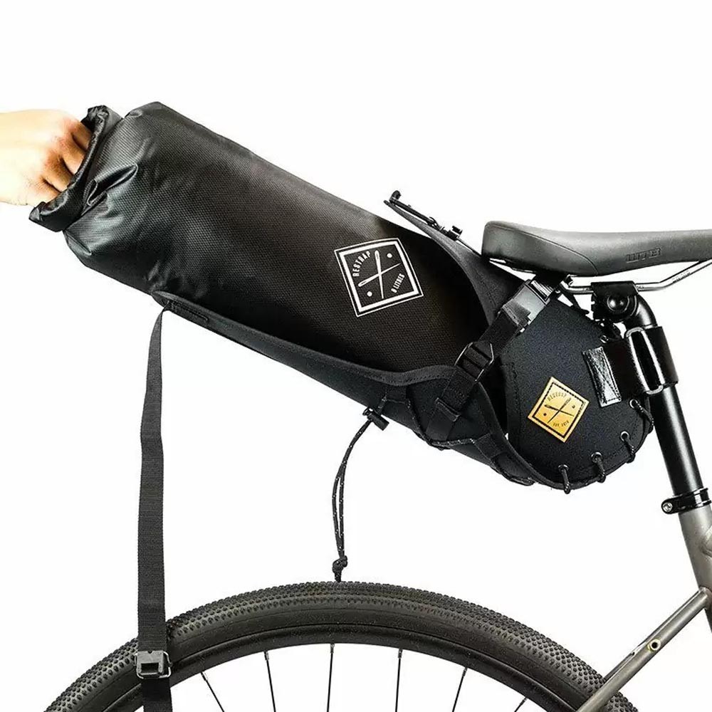 La soluzione definitiva per bikepacking cicloturismo e spostamenti urbani con ampio carico, la Borsa Sottosella Restrap 14L Nera in Cordura 1000D di alta qualità con sacca stagna da 14 litri si monta senza viti né morsetti su qualsiasi bicicletta in pochi secondi. Il fondino rigido con fondo rinforzato la fibbia magnetica Fidlock brevettata la paracorda militare riflettente gli occhielli rinforzati e la produzione artigianale in Yorkshire completano una borsa resistente e durevole nel tempo.