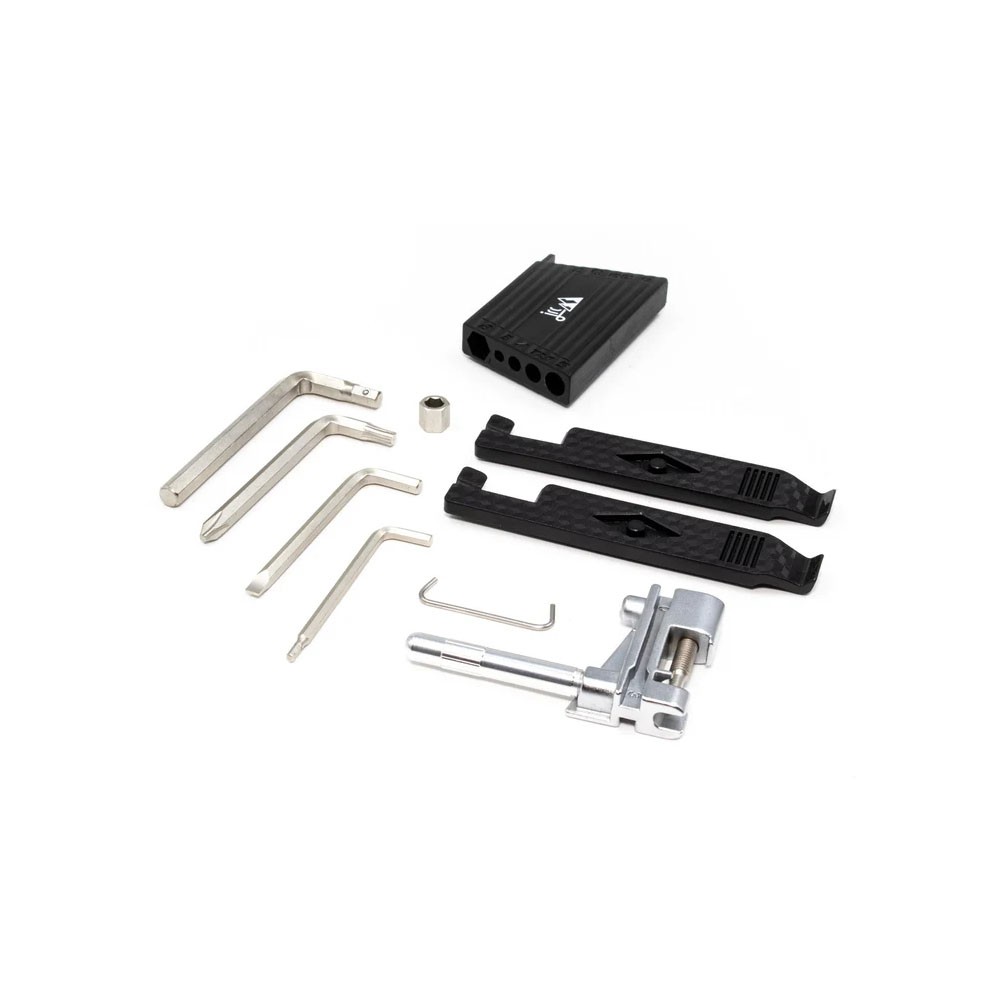 Progettato per essere il kit di riparazione definitivo e compatto, il Multiattrezzo Flatpack Set JRC si ripone in modo ordinato nella tasca della tua maglia o nella sottosella, pronto per intervenire rapidamente quando si verificano imprevisti.