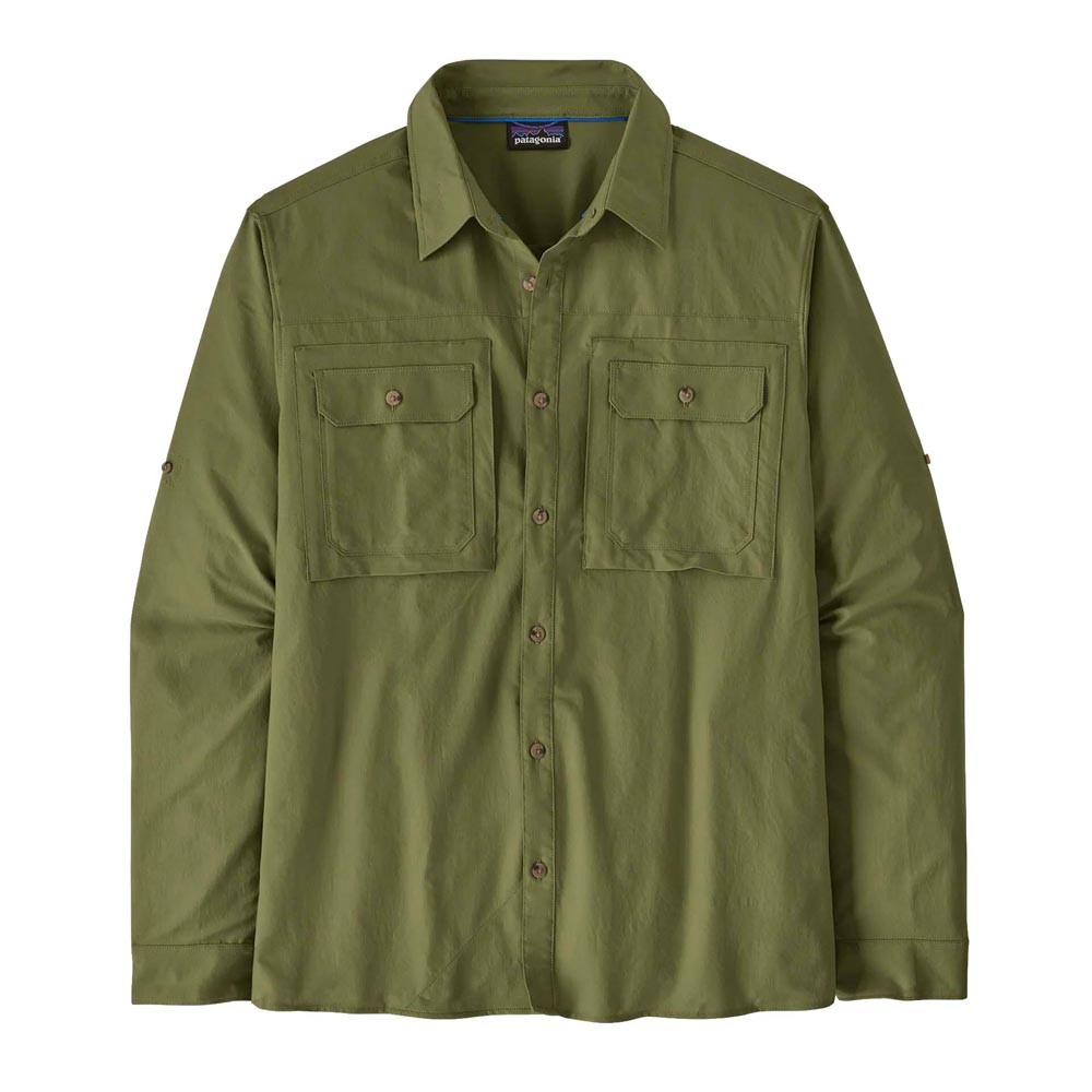 Ideale per le lunghe giornate di escursione sotto il sole, questa camicia trekking Patagonia Self Guided in 100 per cento poliestere riciclato leggero unisce protezione solare 40 UPF e fori di ventilazione su spalle e schiena per mantenerti fresco in quota. Il colletto ribaltabile a due strati, le due tasche sul petto con cerniera e il mini panno integrato completano un capo tecnico con certificazione Fair Trade.
