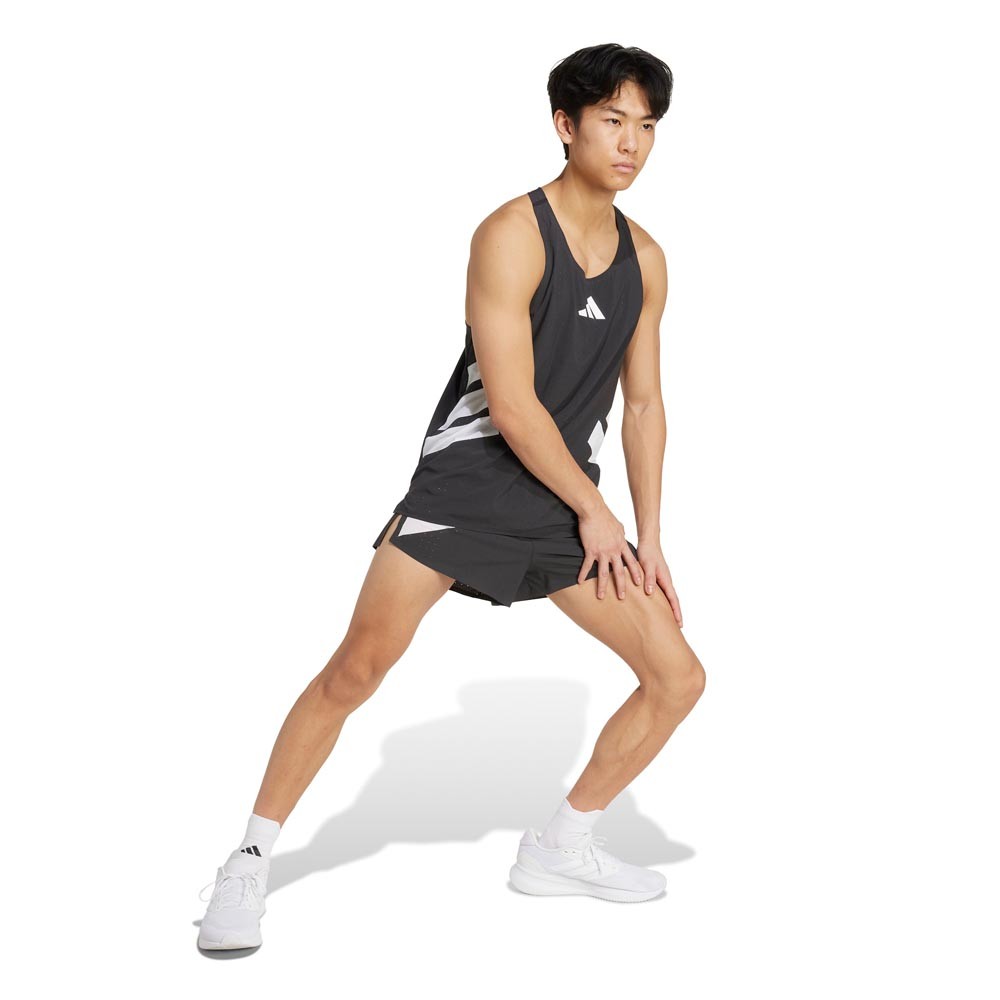 Pantaloncini running corti Adizero nero bianco, progettati per velocità, aerodinamica e organizzazione perfetta dei tuoi essenziali. Pantaloncini running corti Adizero...