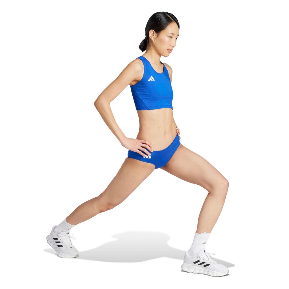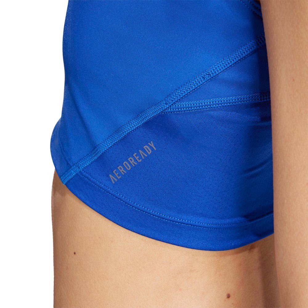 La vestibilità attillata di questo top running avvolge il busto in modo stabile, mentre il tessuto interlock elasticizzato supporta il movimento naturale. La tecnologia AEROREADY gestisce l’umidità, e il taglio olimpionico sulla schiena permette una totale libertà delle braccia per affrontare con sicurezza ogni passo.