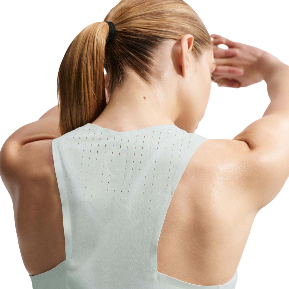 Progettata per le gare più impegnative, la Canotta Running Nike AeroSwift donna Barely Verde Nero in 100 per cento poliestere con tecnologia Dri-FIT ADV e slim fit combina tessuto traspirante leggero e fori traforati nelle zone più soggette a sudorazione per la massima freschezza in corsa. Le cuciture termosaldate su scollo e giromanica donano un fit morbido confortevole e privo di irritazioni da inizio a fine gara.