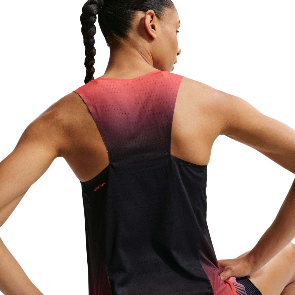 Entra nella zona gara con la Canotta Running Nike AeroSwift donna NRG Nero Bright Crimson in 100 per cento poliestere con tecnologia Dri-FIT ADV slim fit. Il tessuto leggero con zone perforate per il flusso dell aria mantiene la pelle asciutta e fresca dall inizio alla fine. Le cuciture termosaldate su collo e giromanica per un fit confortevole senza attrito e il logo Swoosh rifrangente completano un capo da gara essenziale.