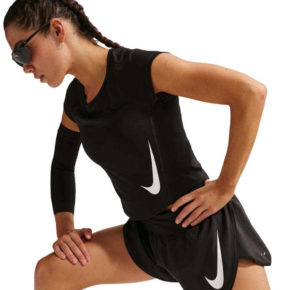 La canotta running Nike AeroSwift Dri-FIT ADV per donna offre comfort e freschezza grazie al tessuto leggero e traspirante, perfetta per superare i tuoi limiti. La canotta running Nike AeroSwift...