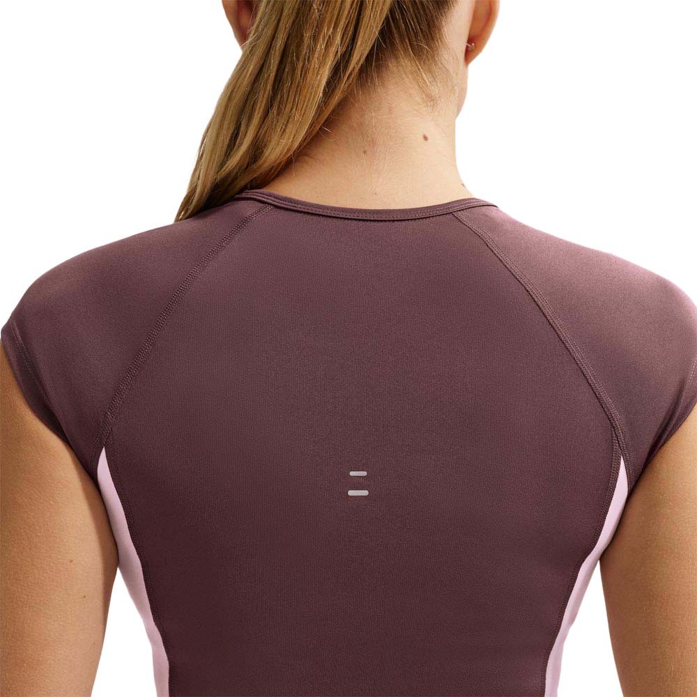 La costruzione in poliestere con tecnologia Dri-FIT di questa T-shirt running Nike allontana il sudore, mentre il taglio leggermente corto e aderente riduce gli strati superflui e lascia totale libertà di movimento. Le maniche a raglan con manica ad aletta aiutano a limitare le irritazioni nel giromanica, mentre la grafica Swoosh in primo piano completa un top versatile da allenamento e streetwear.