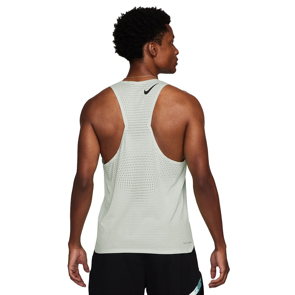 Grazie alla tecnologia avanzata e al tessuto traspirante di questa canotta running Aeroswift di Nike, potrai mantenerti sempre asciutto e confortevole mentre superi i tuoi limiti. Sono state potenziate le funzionalità di ventilazione, aumentando il numero di fori nelle zone soggette a elevata temperatura, per favorire un migliore flusso d'aria. Questo ti aiuterà a restare fresco e concentrato, pronto per il tuo prossimo passo.