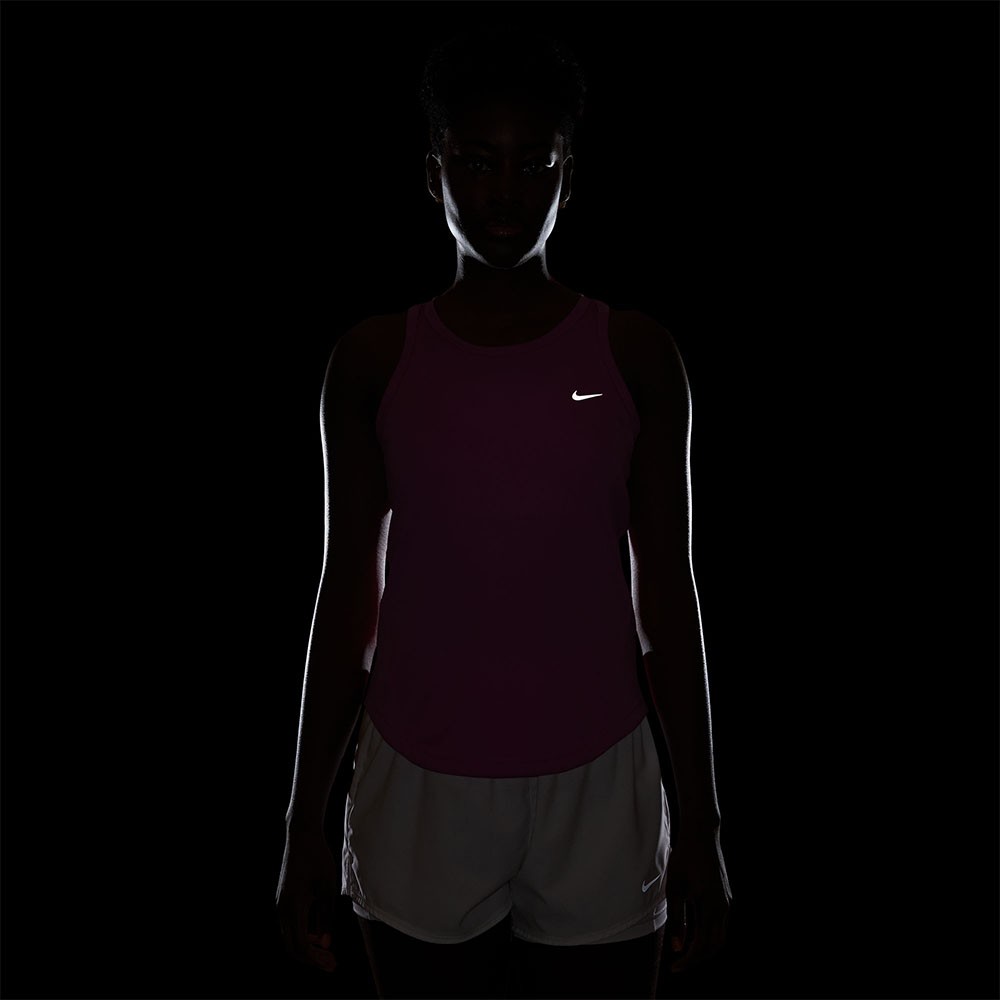 Con logo Swoosh rifrangente sul petto, questa maglietta running tecnica Nike completa il tuo abbigliamento running con funzionalità e stile pensati per atlete determinate.