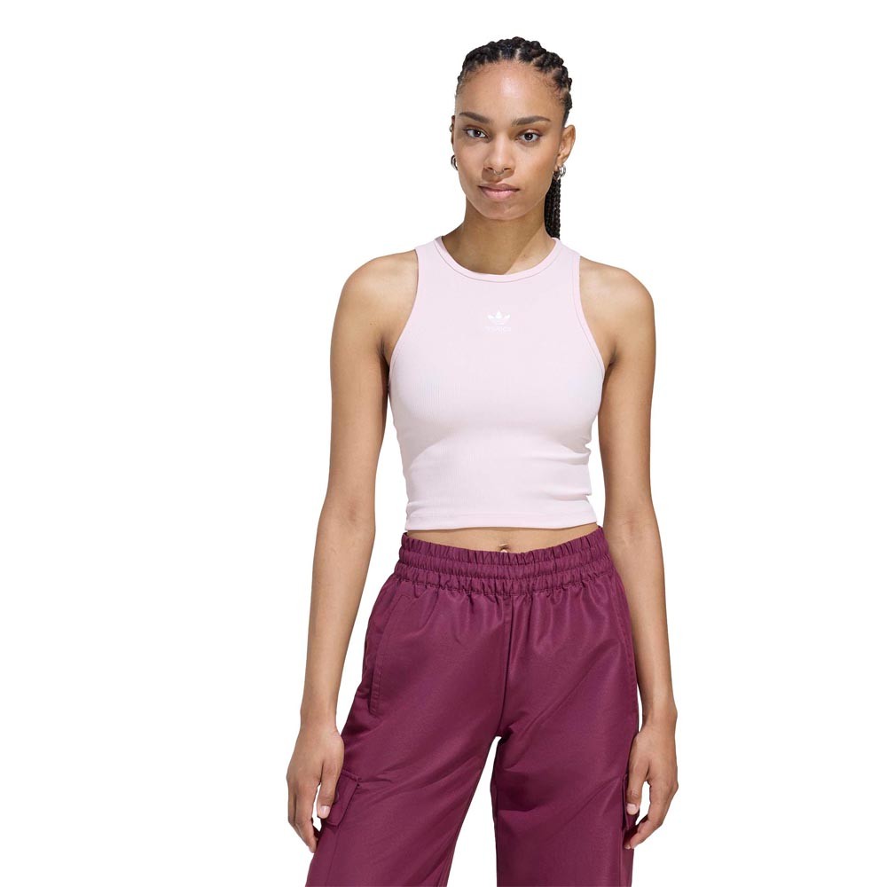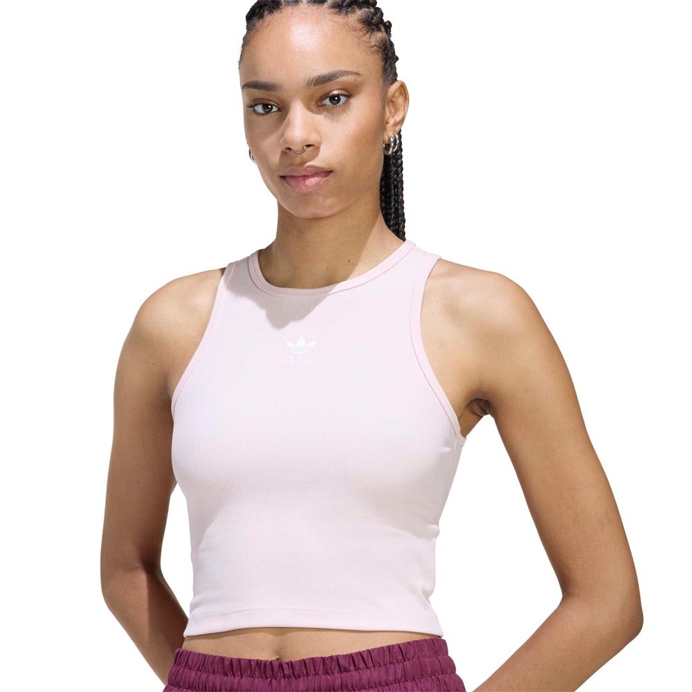 La canotta ADIDAS Originals Essentials rosa è il capo jolly che si adatta a ogni momento della giornata. La struttura leggera in maglia a coste abbraccia le forme con morbidezza, mentre il girocollo a coste e il taglio olimpionico sulla schiena donano un look femminile e contemporaneo. Da indossare con tuta, jeans o sotto una giacca, è perfetta per passare dal giorno alla sera con naturalezza.