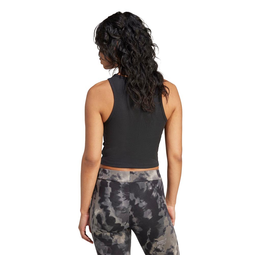 L’Adidas top Originals Essentials Trefoil nero è un top morbido e versatile pensato per accompagnarti dal giorno alla sera. La maglia a coste in cotone, viscosa ed elastan abbraccia le curve con una vestibilità aderente e leggera, mentre il girocollo e il taglio olimpionico sulla schiena donano un look pulito e femminile. Perfetto con jogger sportivi o jeans a vita alta per uno stile casual curato.