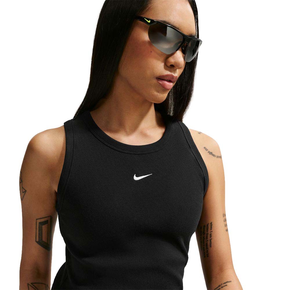 Semplicemente confortevole ogni giorno, la Canotta Nike Sportswear a costine donna Nero in 94 per cento cotone e 6 per cento spandex con fit aderente e logo ricamato offre uno stile essenziale e femminile per ogni occasione casual. La morbidezza del cotone il tessuto a costine e la vestibilità aderente completano un capo quotidiano essenziale da abbinare a tutto con facilità.