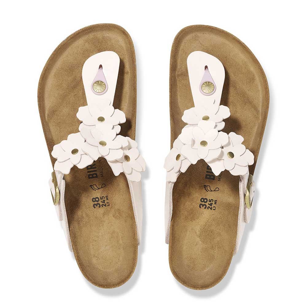 La silhouette di questi Sandali Birkenstock Gizeh garantisce grip e stabilità pur mantenendo un design minimal, qui arricchito da piccole applicazioni a fiore che valorizzano la tomaia. La pelle anilina rosa con speciale sheen crea un effetto elegante, mentre il plantare anatomico in sughero e lattice, la fodera in suede e la suola in EVA lavorano insieme per offrire comfort e leggerezza dall’alba al tramonto.