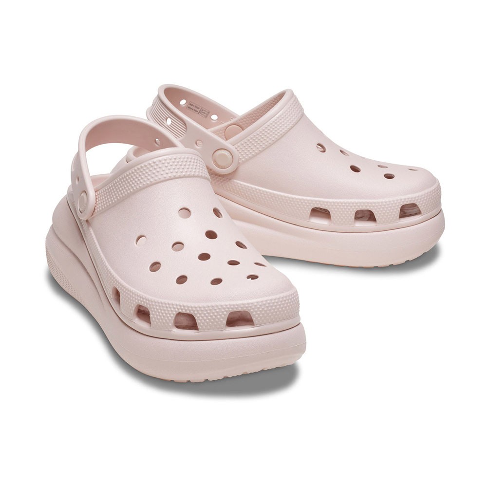 Crocs Crush Zeppa Rosa Chiaro. Grazie all'altezza maggiorata e al design audace, questo nuovissimo e dinamico sabot ha ancora più opzioni di personalizzazione, con i fori Jibbitz™ sulla tomaia e il cinturino rotante. Al comfort Crocs che ami, Crocs ha aggiunto a questi Sandali Mare Donna altezza, portamento e stile.