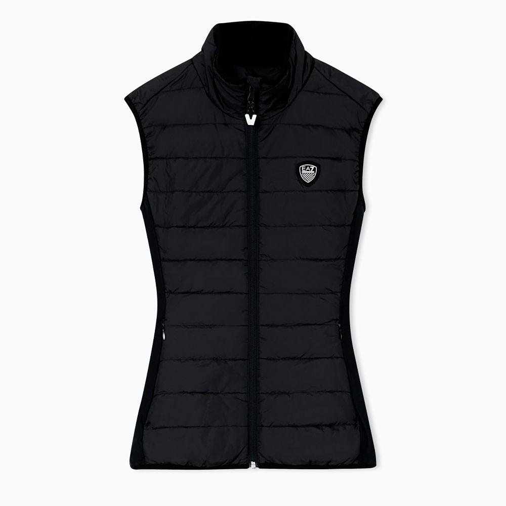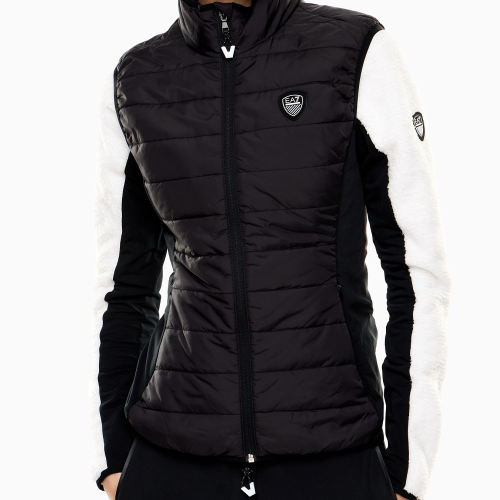 I pantaloni, realizzati nello stesso tessuto tecnico, includono ginocchia preformate, ghetta interna antineve e fondo gamba apribile. Il gilet in nylon traspirante e idrorepellente completa il look, offrendo un ulteriore strato isolante. Rifinito con il logo EA7 e lo scudetto distintivo, questo completo è un connubio perfetto tra innovazione, design italiano e spirito sportivo.