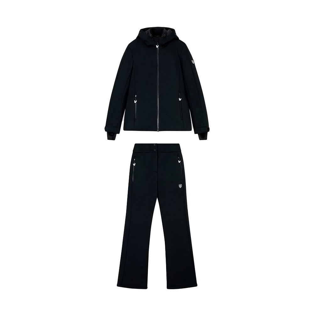 Questo completo da sci da donna firmato EA7 Emporio Armani è progettato per offrire protezione e libertà di movimento sulle piste e nel tempo libero in montagna. Il set è composto da giacca, gilet e pantaloni tecnici, tutti realizzati in tessuto softshell elasticizzato, impermeabile (10.000 mm) e traspirante (10.000 g/m²/24h), con trattamento idrorepellente per resistere alla neve e all’umidità. Il tessuto 4-way stretch assicura un fit dinamico e confortevole, perfetto per affrontare discese impegnative o momenti di relax in baita.