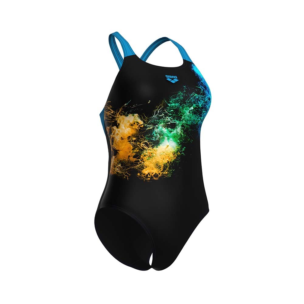 Immergiti nel comfort con il costume intero piscina Arena Vibrant! Realizzato in tessuto MaxFit Eco riciclato, offre resistenza al cloro e al sale, protezione UV UPF 50+, asciugatura rapida e massima libertà di movimento. Le spalline larghe e il taglio posteriore ergonomico garantiscono un sostegno ottimale. Perfetto per nuoto fitness e tempo libero.
