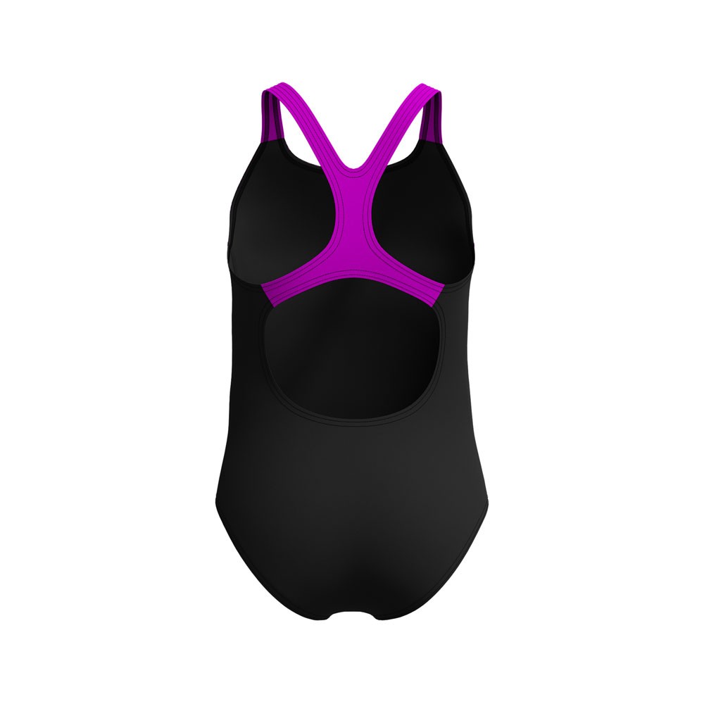 Costume intero Speedo Medley nero e fucsia per bambina, perfetto per la piscina. Design moderno e tessuto resistente al cloro. Costume intero Speedo Medley nero e...