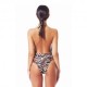 Costume intero stringato davanti e con schiena scoperta, in tessuto Lycra animalier. Costume intero stringato davanti e...