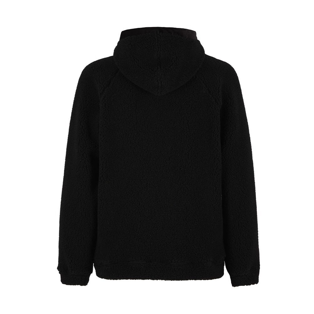 Il tessuto contiene il 57% di poliestere riciclato, riducendo l’impatto ambientale senza rinunciare a performance e resistenza. La zip frontale, il cappuccio e le due tasche con chiusura lampo offrono funzionalità quotidiana.