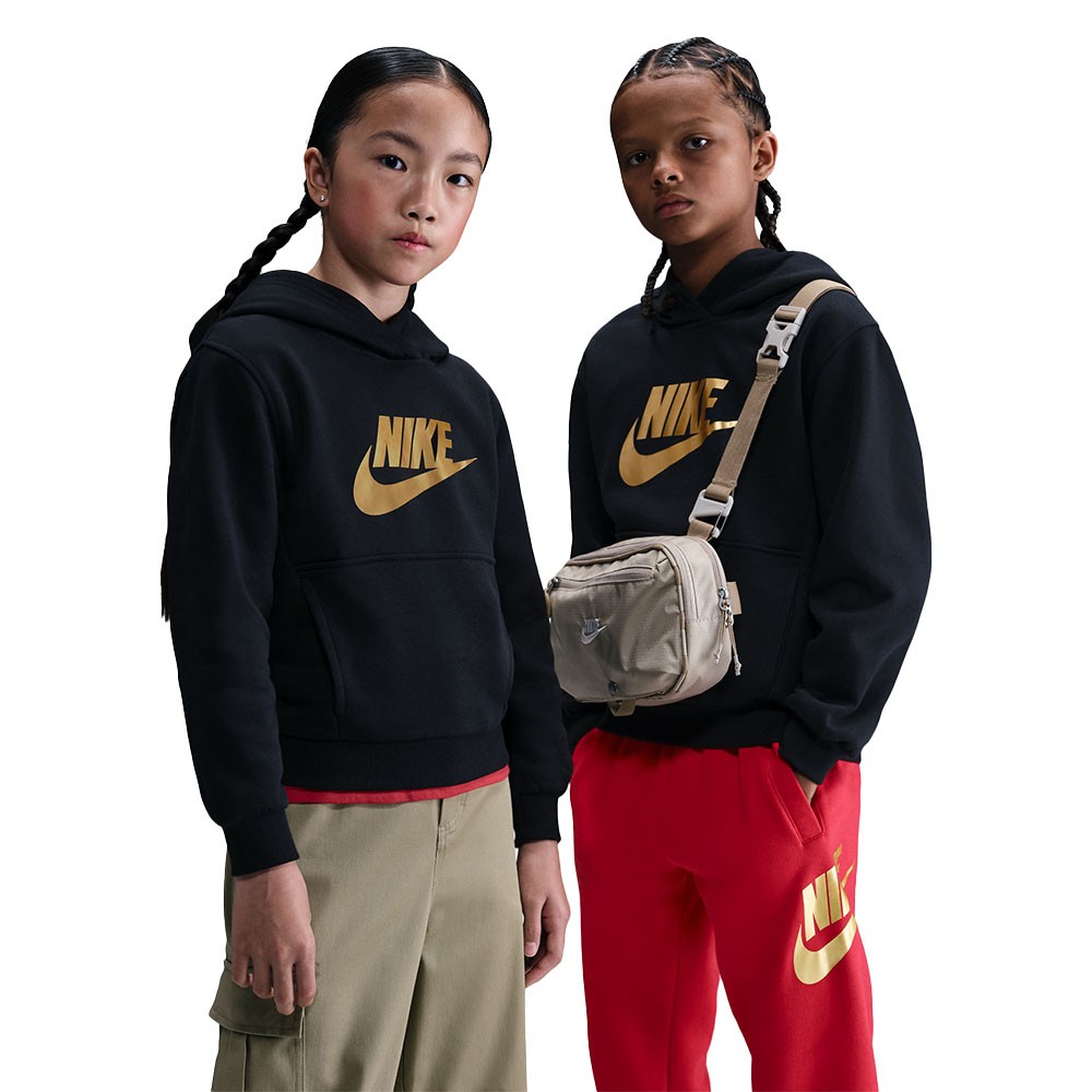 Nike Sportswear Club Fleece Felpa con cappuccio – Ragazzo/a Liscia sulla parte esterna e morbida e spazzolata sulla pelle, questa felpa con cappuccio Club Fleece è un comodo capo ideale per le giornate fredde. Il ricamo in satin sul logo aggiunge un tocco di stile a questo capo classico. L'ampia tasca anteriore è ideale per riporre snack e oggetti indispensabili. I polsini a costine elasticizzati offrono un fit sicuro e avvolgente. La fodera in satin sul cappuccio aggiunge morbidezza e un tocco di colore. More Details Prodotto importato Corpo: 80% cotone/20% poliestere. Costine: 97% cotone/3% spandex. Lavabile in lavatrice