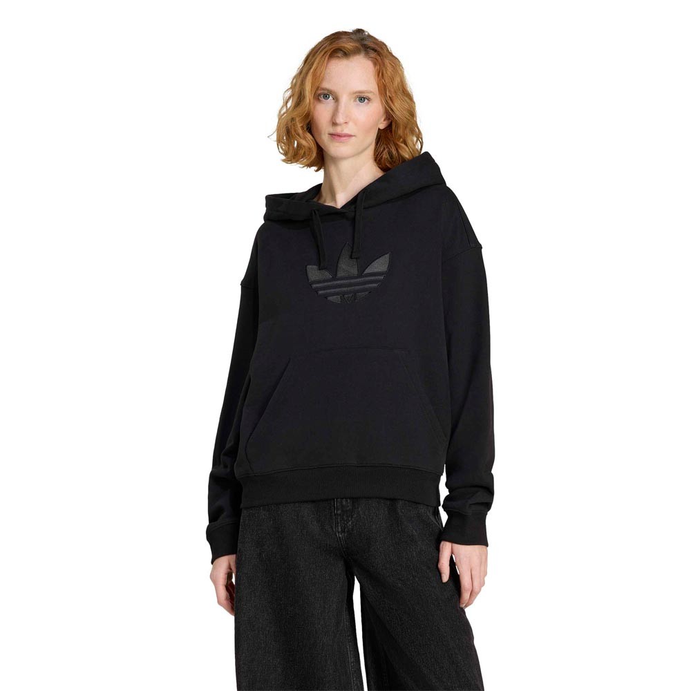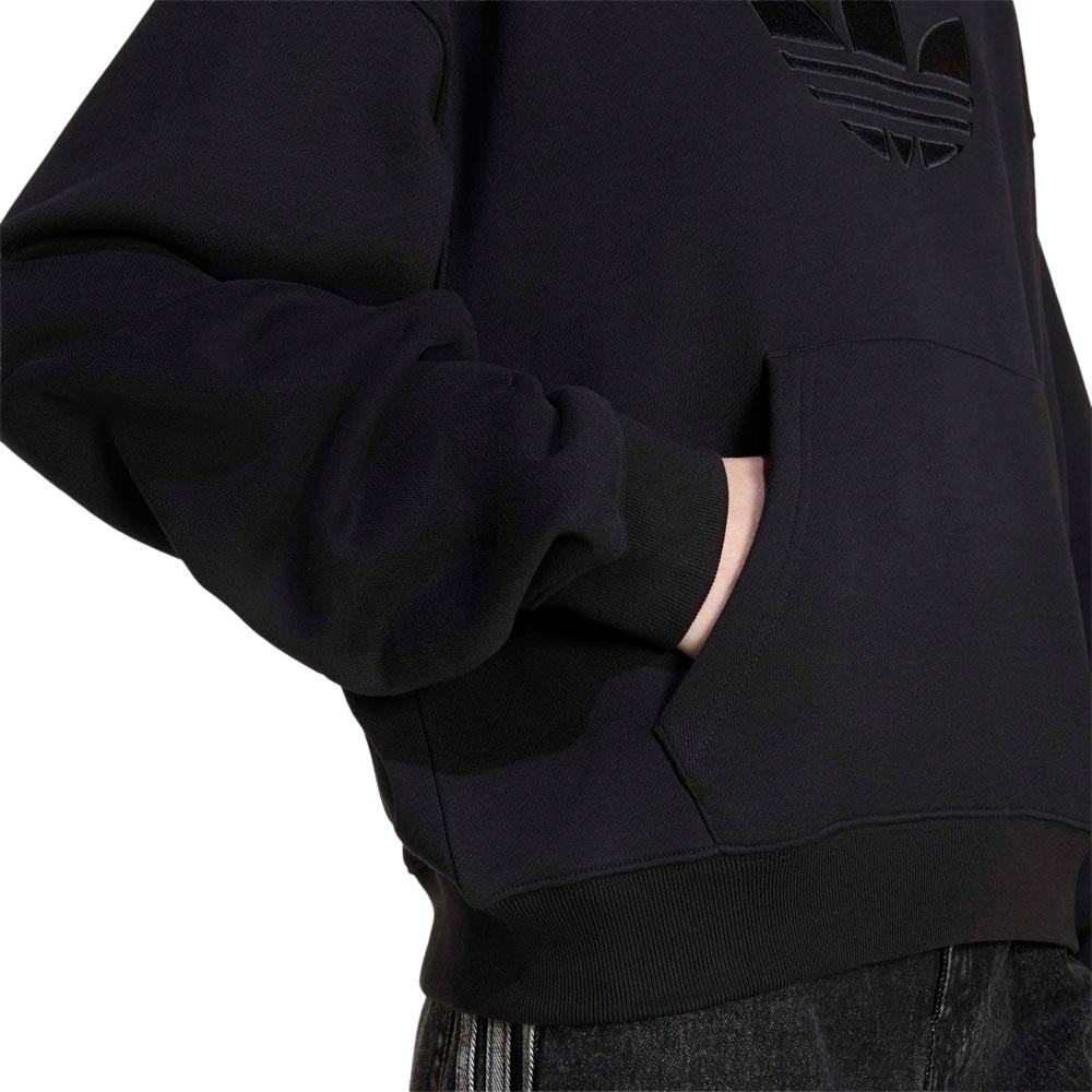 La felpa con cappuccio Trefoil nera fonde comfort e stile iconico. La vestibilità ampia avvolge con un mood rilassato, mentre il cappuccio con cordino aggiunge calore e protezione nelle giornate fresche. Realizzata in cotone, richiama lo spirito vibrante della gamma Adicolor e diventa un capo intramontabile da abbinare a jeans, jogger o leggings.