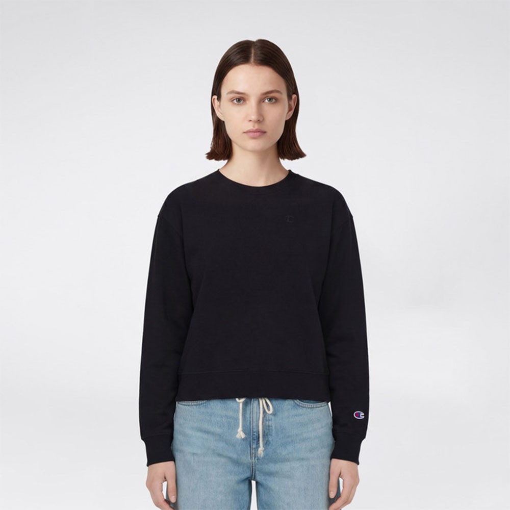 Felpa EA7 nera da donna. Girocollo, vestibilità regolare, logo EA7 in rilievo argentato. Comfort e stile Emporio Armani. Felpa EA7 nera da donna. Girocollo,...