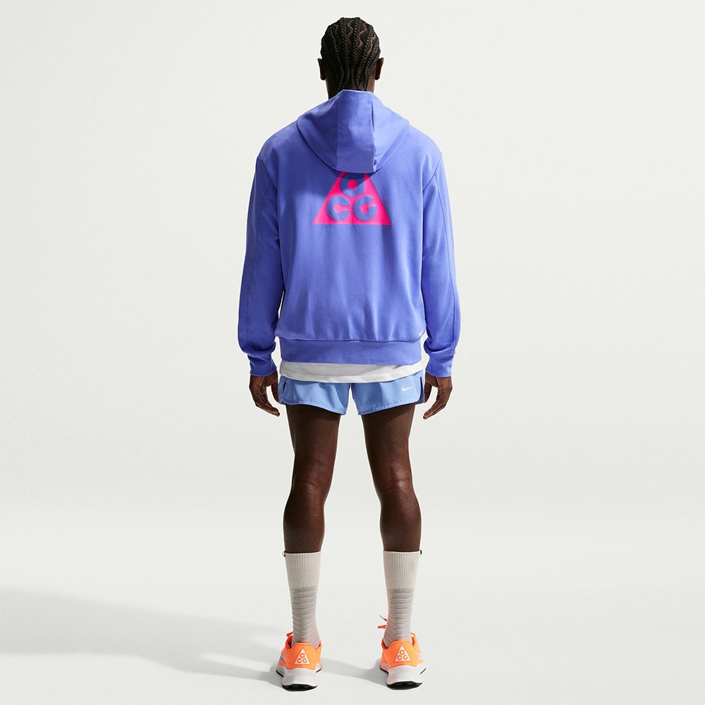 Nike ACG "Magic Hour" Men's Dri-FIT Trail Hoodie You might be warm enough on your run, but what about to and from the trailhead? This hoodie has a roomy fit so you can layer with ease. And the sweat-wicking fabric helps keep you feeling comfortable. Nike Dri-FIT technology moves sweat away from your skin for quicker evaporation, helping you stay dry and comfortable. Lightweight brushed fleece feels soft and breathable. More Details Body: 54% polyester/46% cotton. Hood lining: 100% cotton. Reflective Nike ACG and Nike Swoosh logos Not intended for use as Personal Protective Equipment (PPE) Kangaroo pocket Ribbed hem and cuffs Machine wash Imported