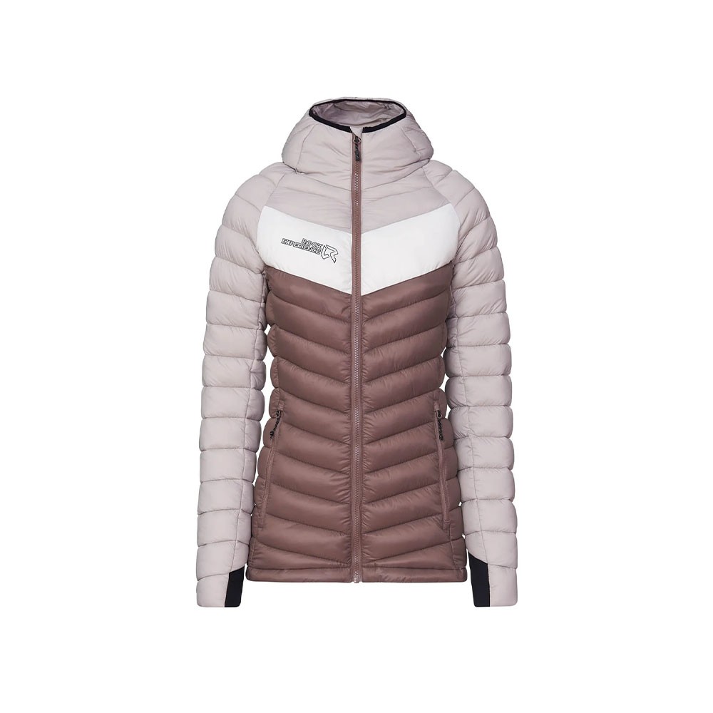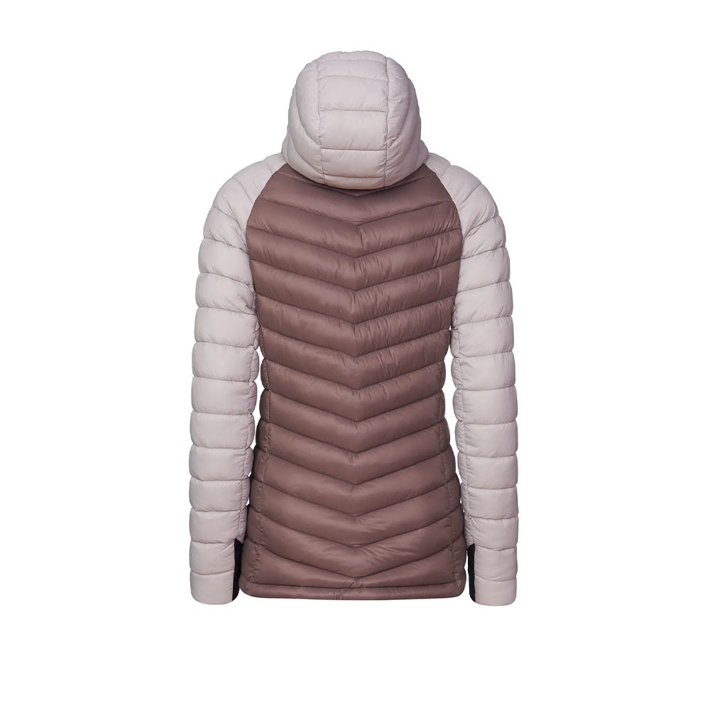 Il tessuto in nylon riciclato PFC-free garantisce protezione senza l’uso di sostanze nocive, preservando al tempo stesso l’ambiente e la salute. La trapuntatura elastica sui fianchi e sotto le braccia assicura aderenza al corpo, lasciando ampia libertà di movimento anche nelle attività più dinamiche.