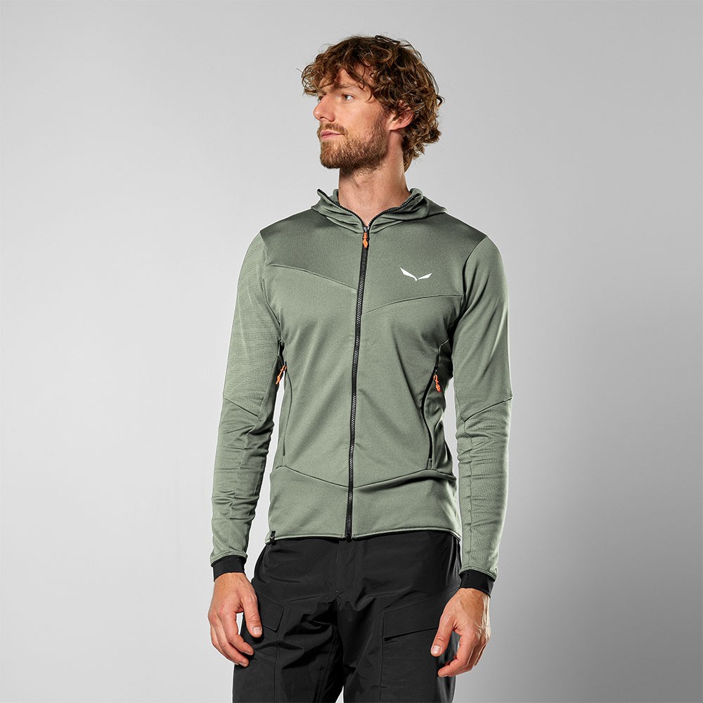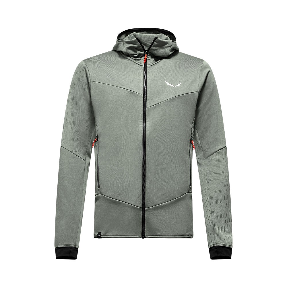 La Salewa Sella Crevasse Hooded Jacket è pensata per chi cerca un midlayer affidabile nelle giornate più fredde. Realizzata con un tessuto 4-way stretch, offre un'eccezionale libertà di movimento, rendendola perfetta per le attività all'aperto come scialpinismo, alpinismo e trekking. La giacca combina un'estetica liscia esterna con una struttura a griglia interna che ottimizza sia la gestione del calore che la riduzione del peso, offrendo comfort e prestazioni elevate.
