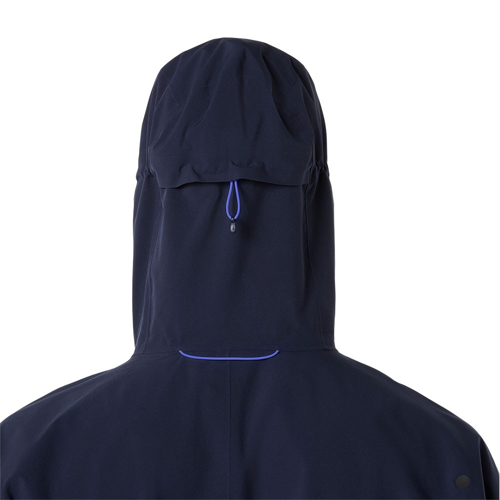 La membrana a 2,5 strati con cuciture interne nastrate garantisce protezione impermeabile dal maltempo, mentre il cappuccio regolabile con visiera integrata e cordino elastico posteriore assicura stabilità e copertura ottimale, limitando le distrazioni durante l’allenamento.