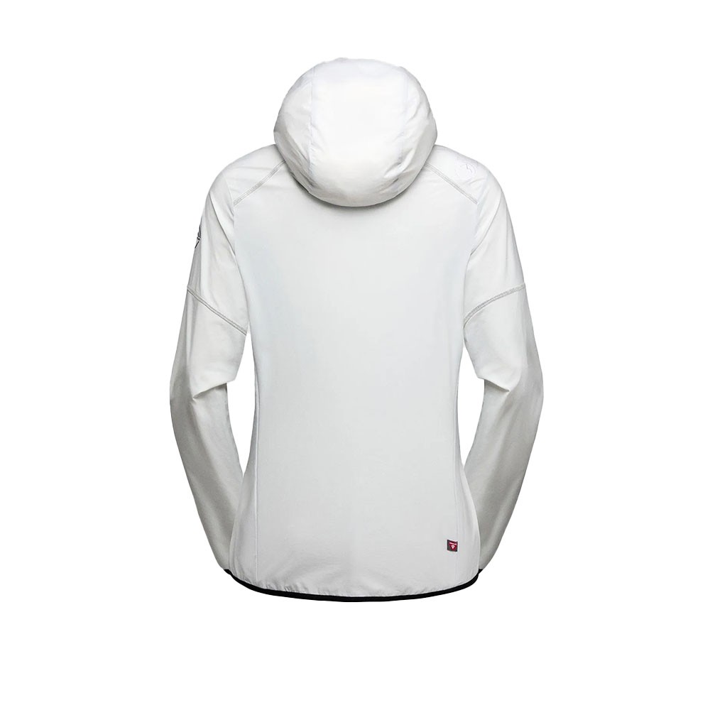 Grazie al mix di tessuti riciclati ed elastici, la giacca offre ampia libertà di movimento e ottima traspirabilità. Il cappuccio e i pannelli laterali in materiale elasticizzato migliorano la vestibilità e la protezione durante l’attività, rendendola una scelta versatile per ogni uscita in montagna.