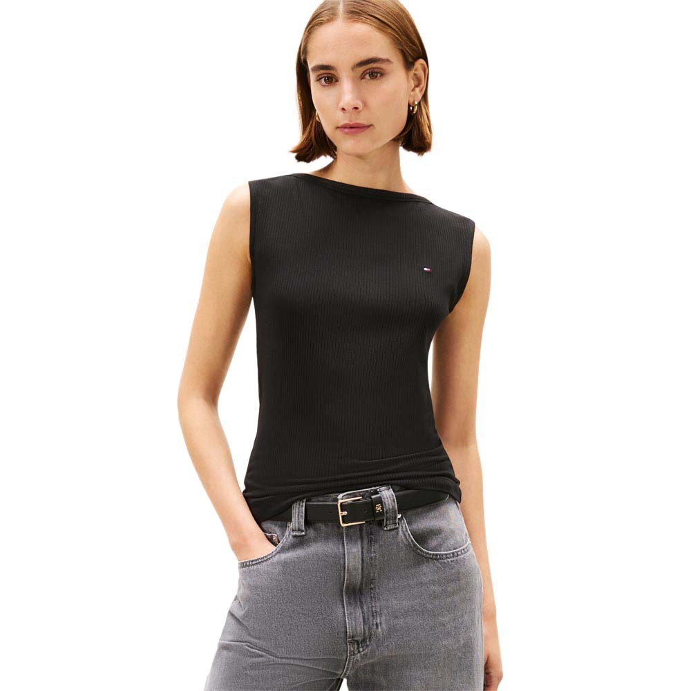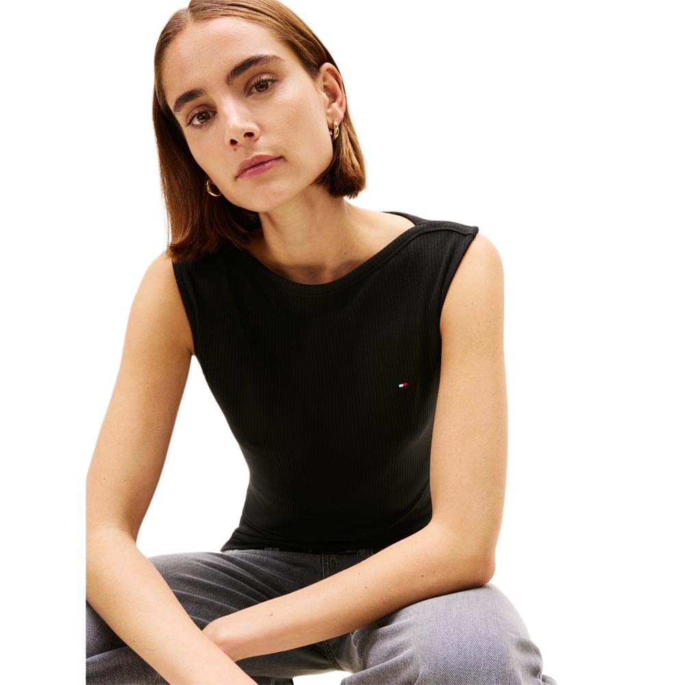 Perfetta come base per layering o da indossare da sola, questa canotta Tommy Hilfiger a costine in tonalità nera offre vestibilità aderente e comfort in un design minimal. La lavorazione rib valorizza la silhouette, mentre la tonalità nera la rende abbinabile a qualsiasi outfit casual e sportivo.