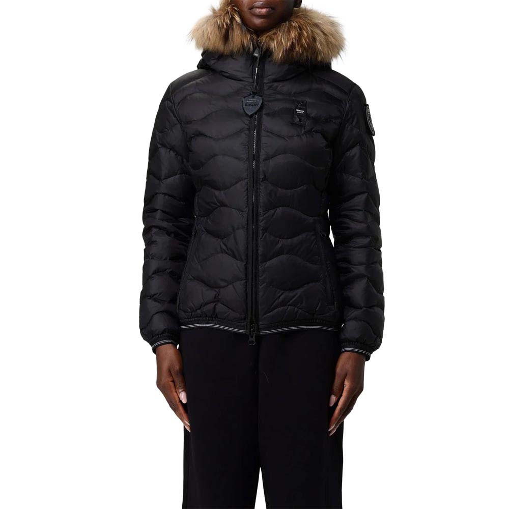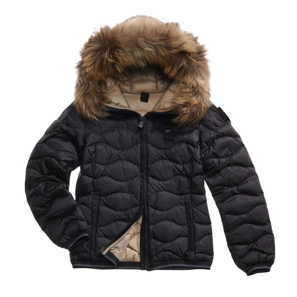 Avvolgiti nel lusso del piumino Blauer Ondina Aldie. Il suo design a onde, la pelliccia di volpe removibile e il nylon lucido lo rendono un capo unico. L'imbottitura in piuma d'oca garantisce calore senza ingombro. Dettagli impeccabili come la zip nascosta e le tasche con zip completano questo must-have invernale. Un tocco di glamour grazie al logo strass.