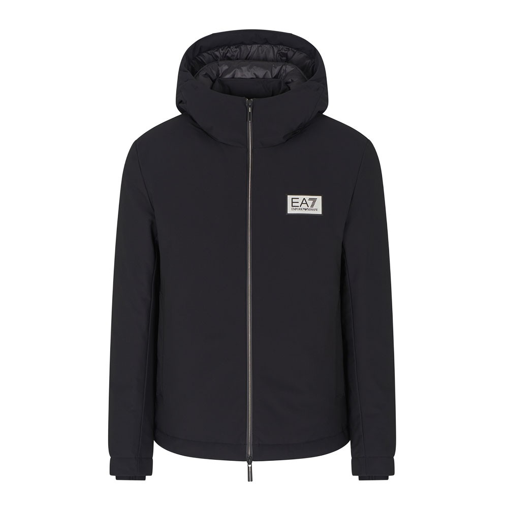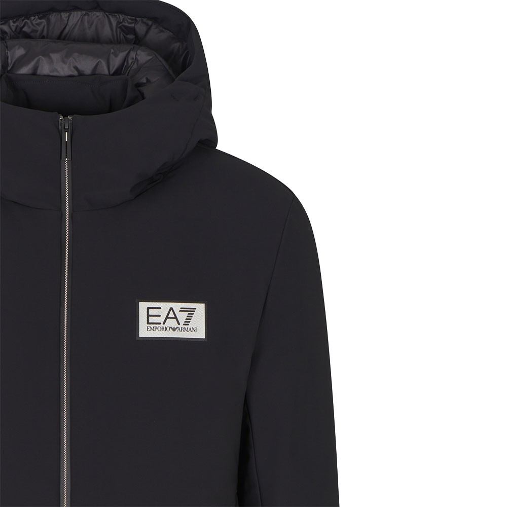 Ea7 Emporio Armani Giacca Bomber Oro Label Nero Uomo, ideale per chi cerca un capo trendy e comodo. Realizzata in nylon stretch con leggera imbottitura, garantisce massima libertà di movimento. Il design presenta un cappuccio, chiusura con zip, due pratiche tasche laterali e l'inconfondibile logo EA7 a contrasto sul petto. La Gold Label si distingue per l'attenzione ai dettagli e l'utilizzo di tessuti di alta qualità, per uno stile sporty chic impeccabile. Un capo versatile, perfetto per completare ogni outfit.