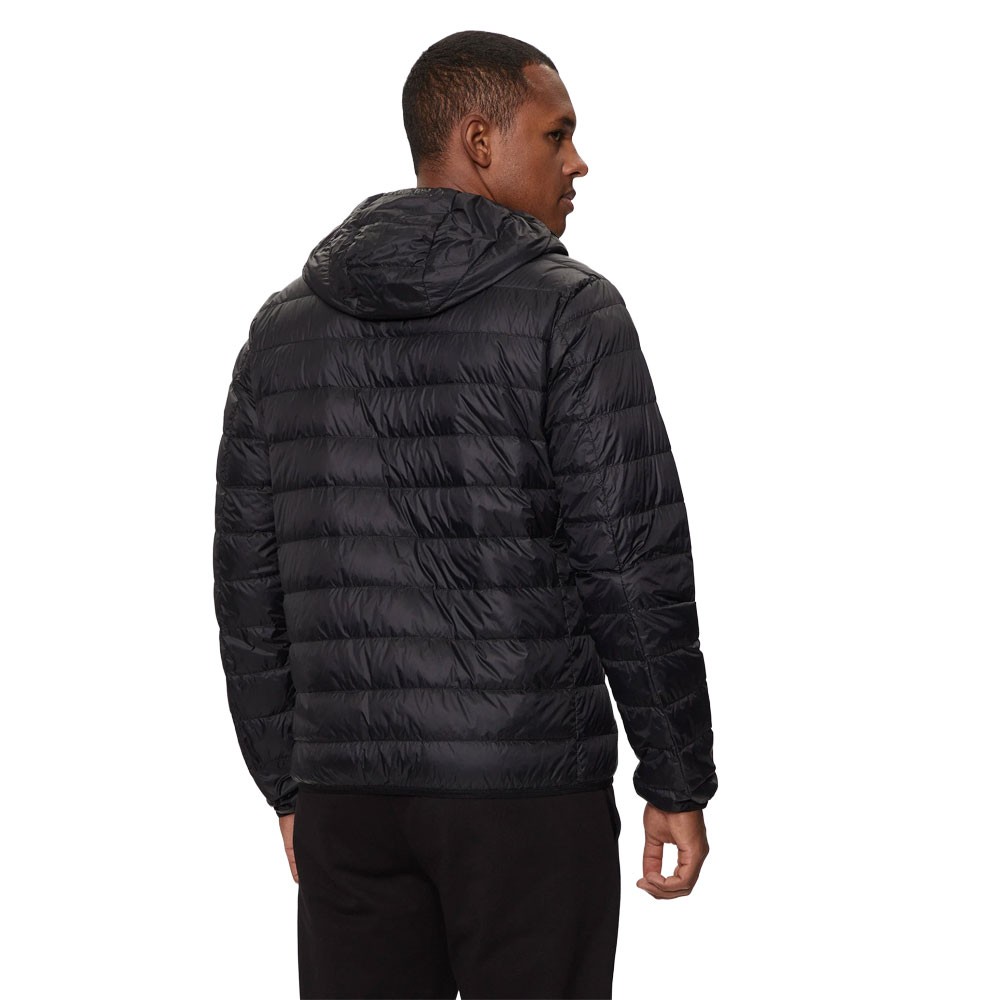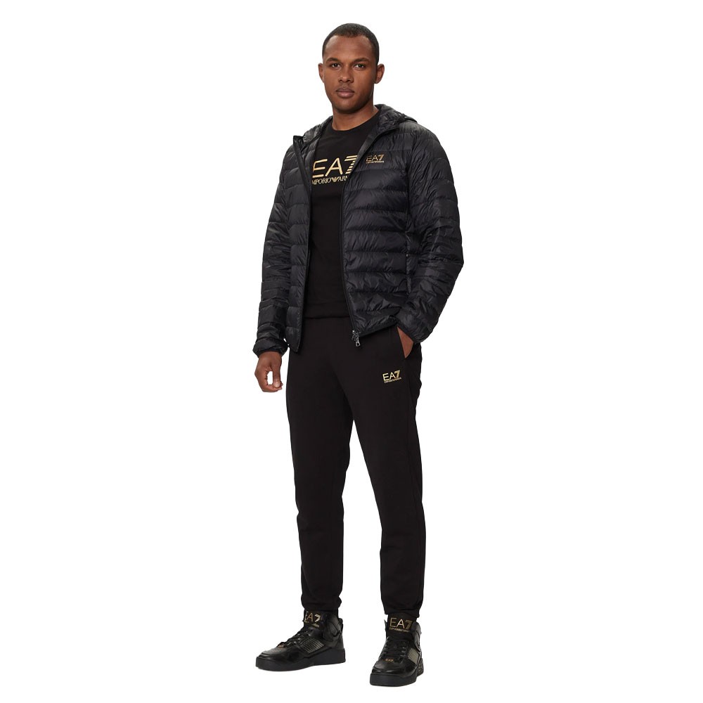Ea7 Emporio Armani Giacca Bomber Oro Label Nero Uomo. Nylon stretch, imbottitura leggera, cappuccio, zip, tasche laterali e logo EA7 a contrasto. Perfetta fusione di stile sportivo ed eleganza. Ea7 Emporio Armani Giacca Bomber Oro...