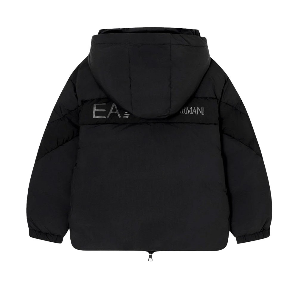 Il design si distingue per la banda logata a contrasto sul retro, che richiama i dettagli iconici della collezione, e per il patch EA7 sul petto che ne firma lo stile. La chiusura con zip frontale e le due tasche laterali rendono il modello pratico e funzionale, ideale per la vita urbana e le attività all’aperto.