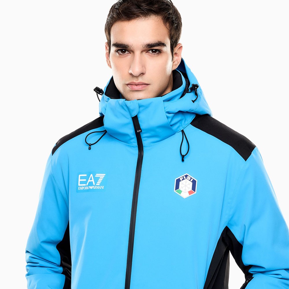 Parte della capsule collection ufficiale FISI, questa giacca celebra l’unione tra EA7 Emporio Armani e la Federazione Italiana Sport Invernali, con loghi istituzionali e la maxi stampa “ITALIA” sul retro. Perfetta sia sulle piste che per l’après-ski, combina performance di alto livello e design inconfondibile, rappresentando il massimo dell’eleganza sportiva made in Italy.