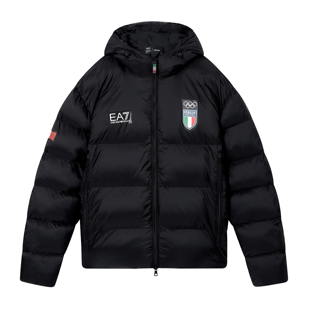 Il Piumino EA7 U Puffy Olympic Team nero unisce stile urbano e spirito olimpico. Realizzato in resistente ripstop con calda imbottitura, è perfetto per l'après-ski e la città. Si distingue per la maxi stampa "ITALIA" sulla schiena e il dettaglio tricolore sulla manica. Con cappuccio e collo montante, offre protezione e comfort, confermandosi capo ufficiale iconico per Milano Cortina 2026.