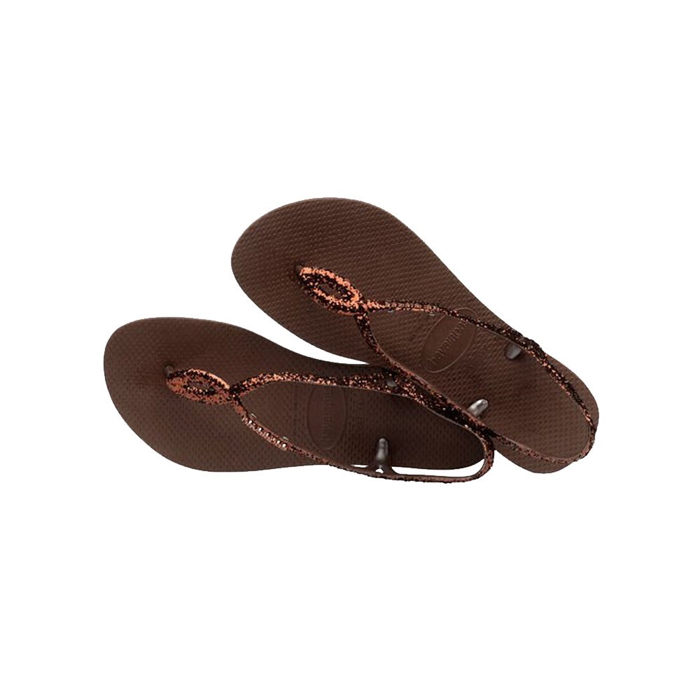 La praticità di queste Infradito Mare Havaianas Luna Premium incontra il glamour da principessa, con una suola in gomma imbottita e un cinturino posteriore, con uno strato di glitter su tutti i cinturini. Il logo metallico delle infradito Havaianas è il tocco di eleganza finale.