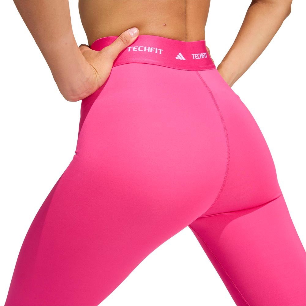 I Leggings palestra Adidas Techfit 7 8 fucsia sono studiati per dare il massimo in spinning cardio e allenamenti intensi. Il tessuto a compressione da bassa a media concentra la potenza muscolare, mentre la tecnologia AEROREADY gestisce il sudore mantenendo freschezza e comfort. La vita alta e il girovita elasticizzato in jacquard con logo performance e scritta Techfit garantiscono un fit stabile senza distrazioni, rendendo questo modello un alleato tecnico e stiloso in parte realizzato con materiali riciclati.