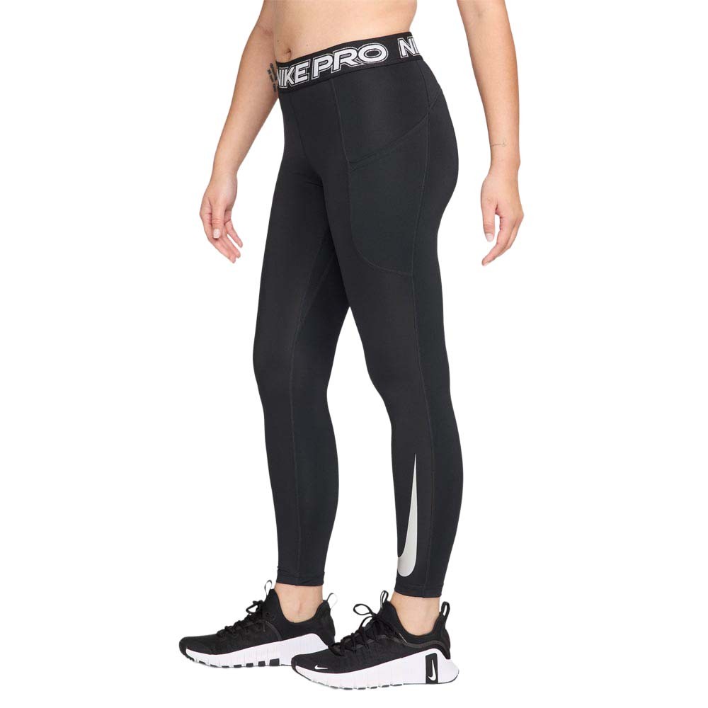 I leggings palestra Nike Pro Mid Rise neri replicano la formula vincente del modello grigio in chiave total black. Il tessuto liscio e stretch, supportato dalla tecnologia Dri FIT, gestisce il sudore e asciuga rapidamente, mentre la fascia jacquard Nike Pro abbraccia il punto vita senza stringere. Perfetti per pesi, cardio e functional, offrono copertura e libertà di movimento in un capo tecnico facile da abbinare.