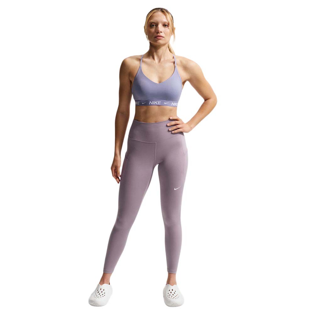 I leggings palestra Nike One rosa sono pensati per muoverti e rilassarti con la stessa sicurezza. Il tessuto non trasparente di peso medio accompagna i movimenti e si asciuga rapidamente grazie a Dri FIT, mentre la vita alta e la fascia interna in mesh offrono sostegno extra. Le tasche aperte sui lati ospitano gli essenziali, la tasca sul retro del girovita è perfetta per lo smartphone e la riduzione delle cuciture valorizza la linea.