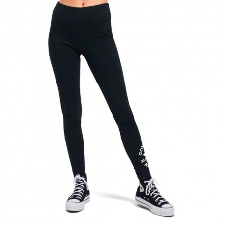 Leggings Converse da donna con grande scritta Chuck Taylor su lungo la gamba sinistra in contrasto bianco e logo stampato a caldo Converse All Star. Vita alta e vestibilità slim. 100% sintetico