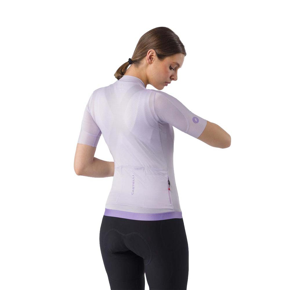 Pensata per le cicliste che vogliono una maglia sempre a loro agio in sella, la Maglia Espresso 2 donna Castelli in tessuto Air O Stretch unisce comfort traspirabilità e vestibilità tailored ottimizzata nella lunghezza frontale. Le tasche posteriori più compatte con finitura al bordo, la quarta tasca con zip e la cerniera YKK Vislon completano una maglia aggiornata in ogni dettaglio.