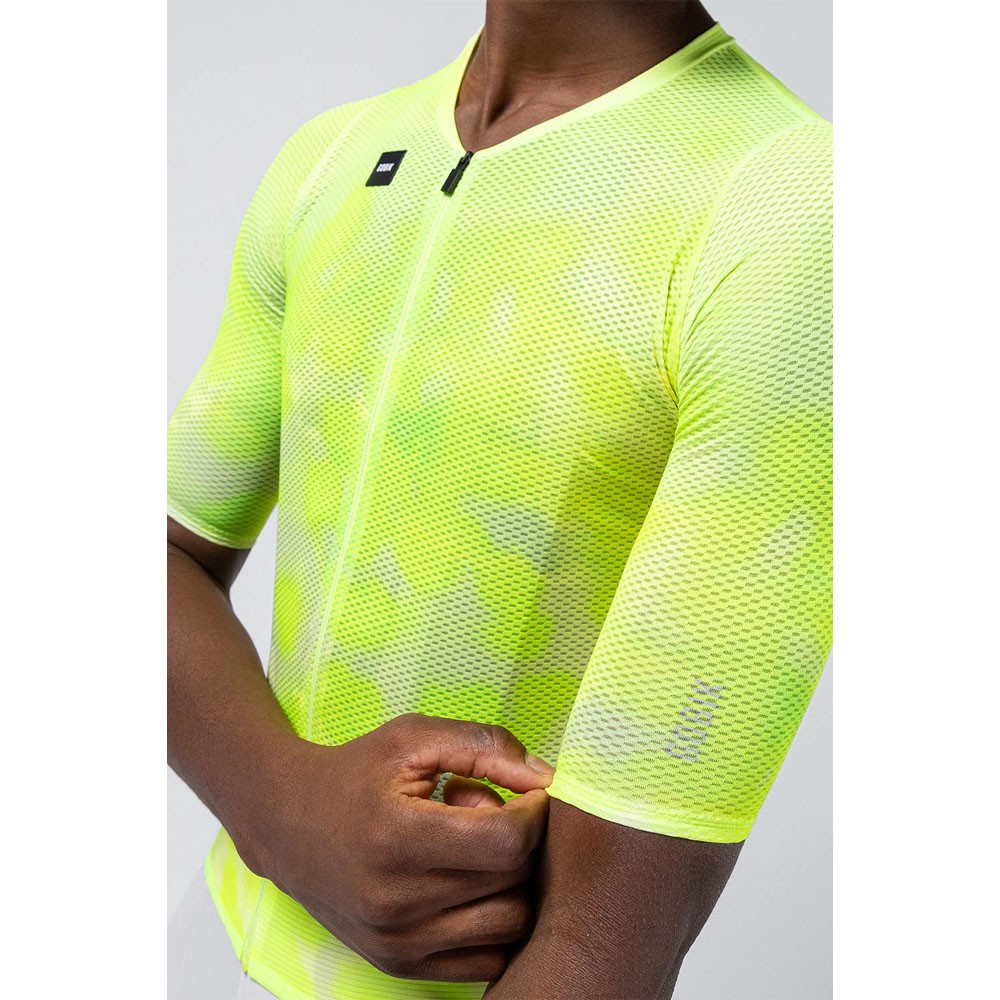 Il tessuto tecnico leggero garantisce un’ottima gestione dell’umidità e favorisce la traspirazione nelle giornate più calde. Le maniche elastiche con struttura aerodinamica assicurano una perfetta aderenza al braccio senza costrizioni, contribuendo a ridurre la resistenza all’aria.